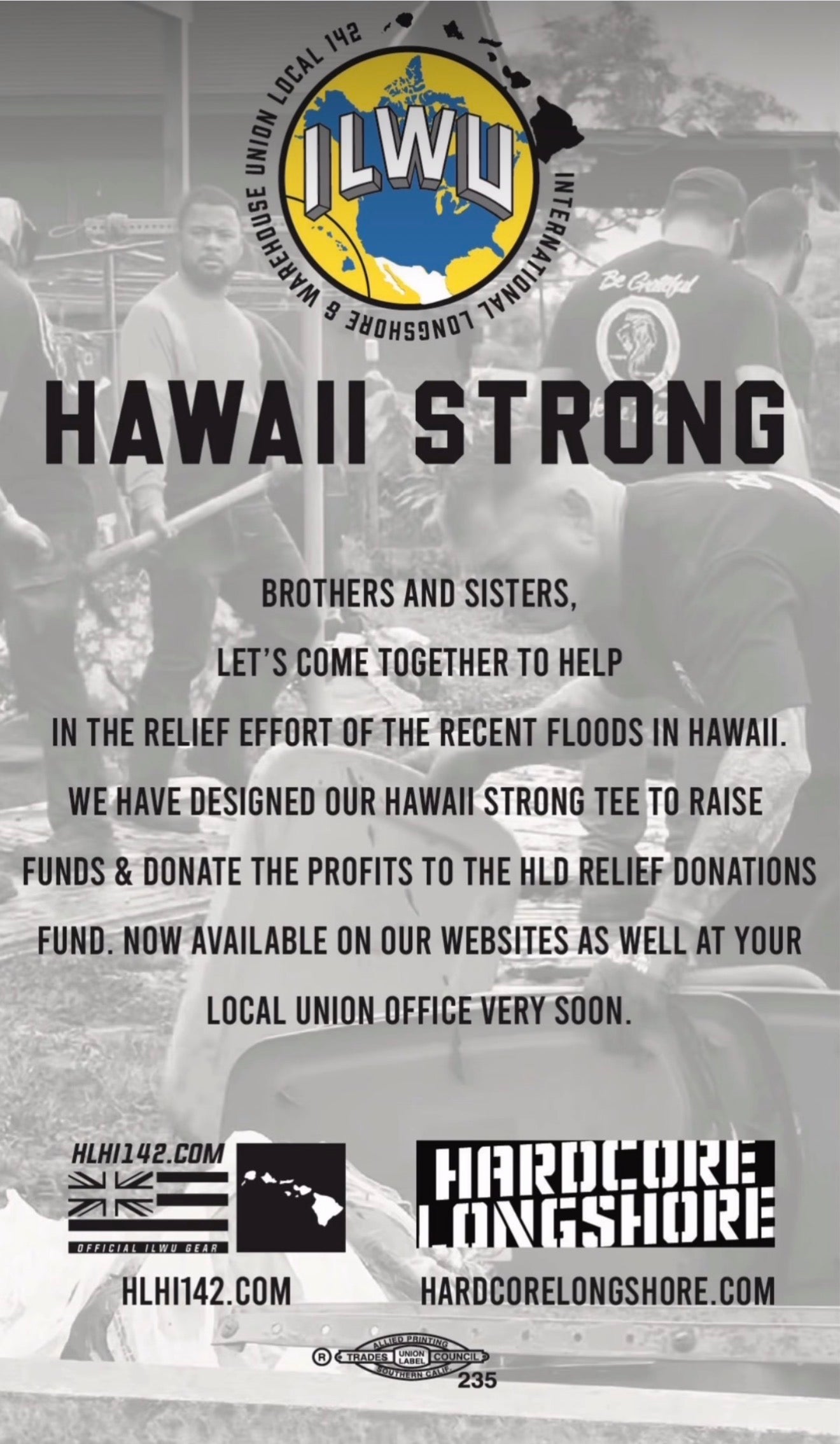 Help support Hawaii during the devastating floods that I’ve been going on. Hardcore Longshore has created this design and an effort to help with donations.
