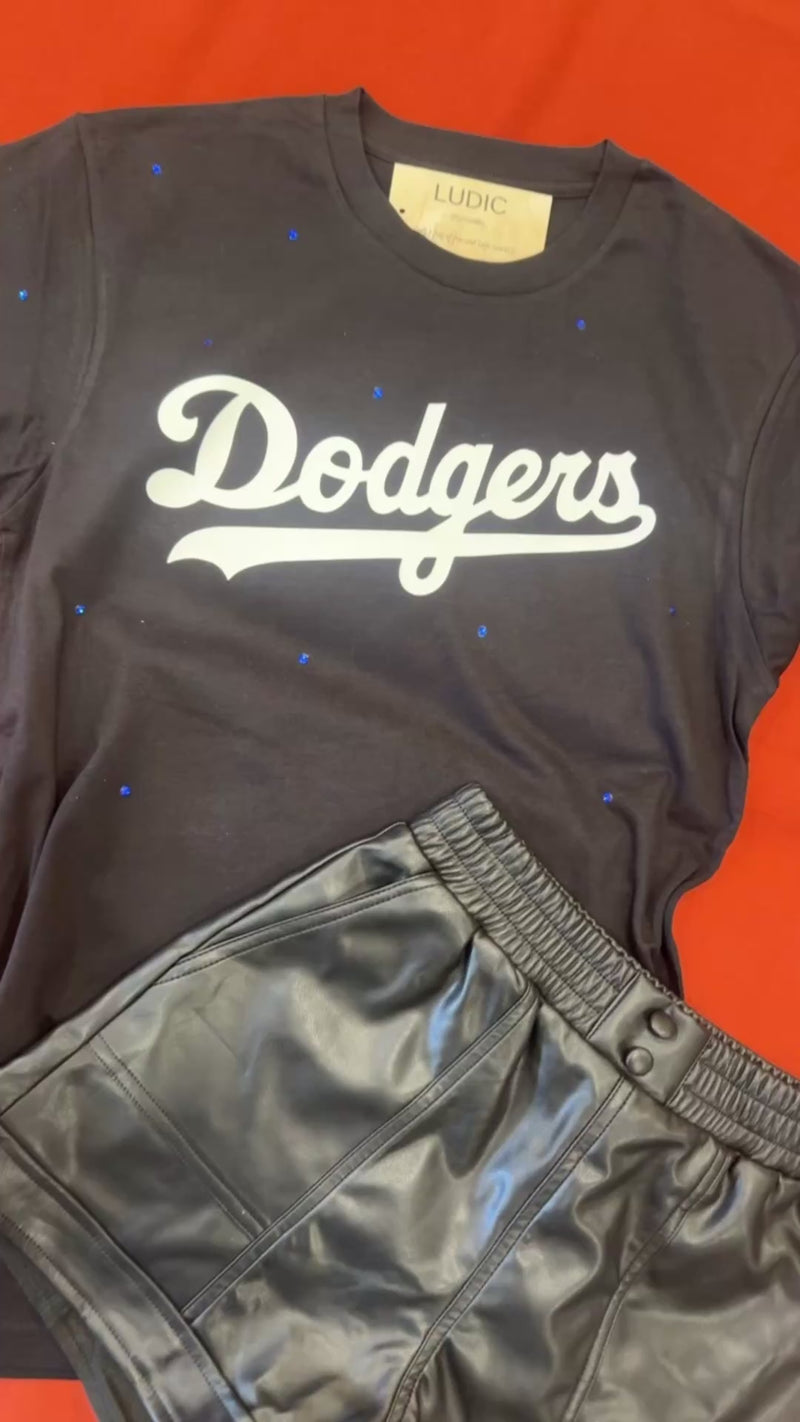 We are obsessed with our new oversize Dodger Rhinestone tee. Take a look! We say size up so we can do a cute little oversize fit wear as dress.